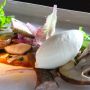 Tarjoiluun keitettyjä uusia perunoita sesongin sieniä ja kasviksia